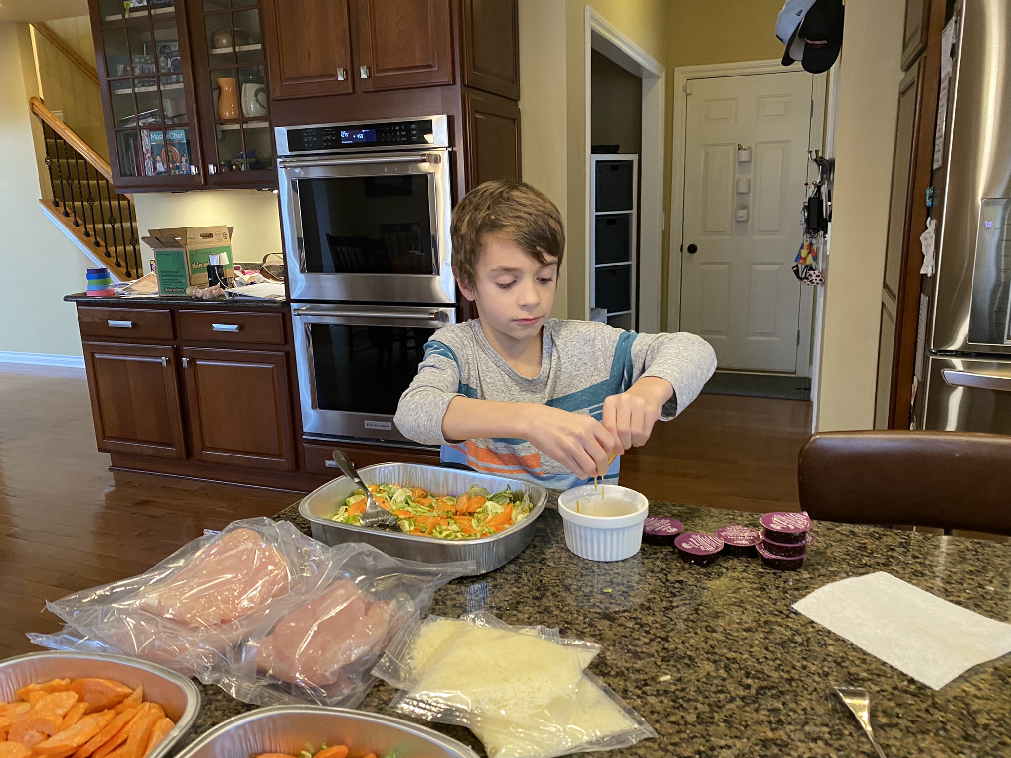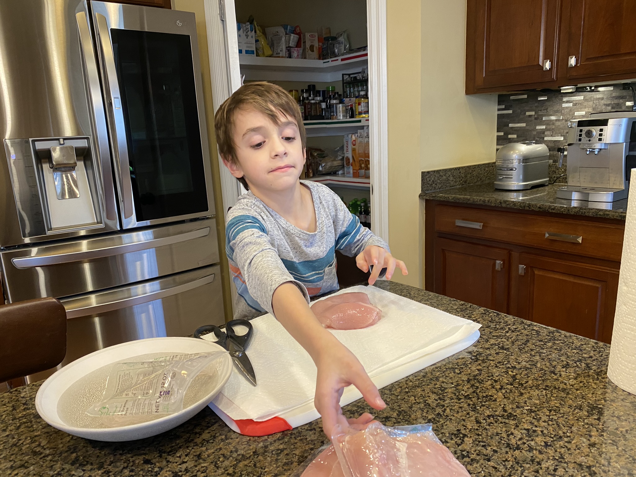 This afternoon, Sammy was a great helper in the kitchen. He really loves working with raw meat – which I appreciate because I don’t love it quite the same way