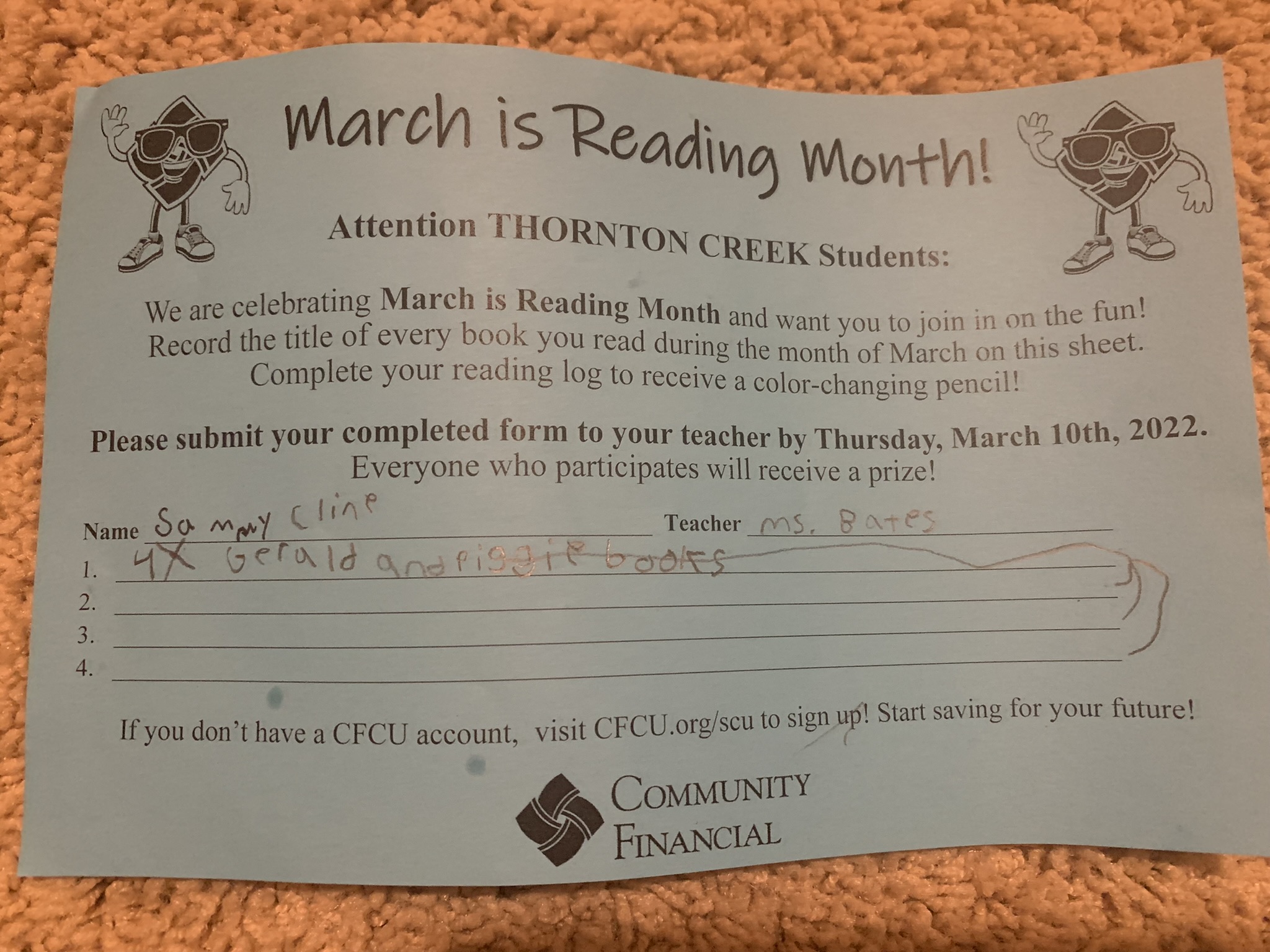 Wednesday wrapped up the final zoom storytime for Thornton Creek’s March is Reading month. It’s such a fun way to engage the kids.