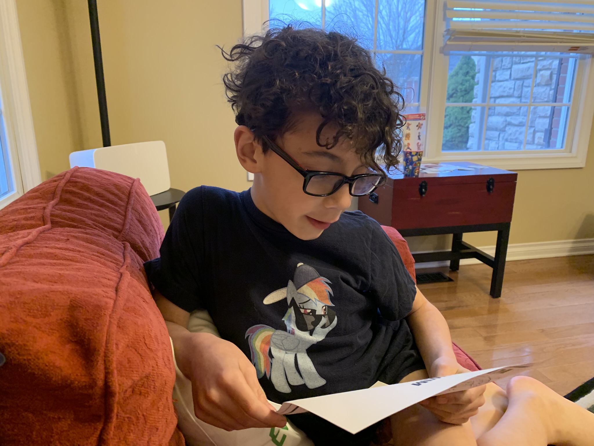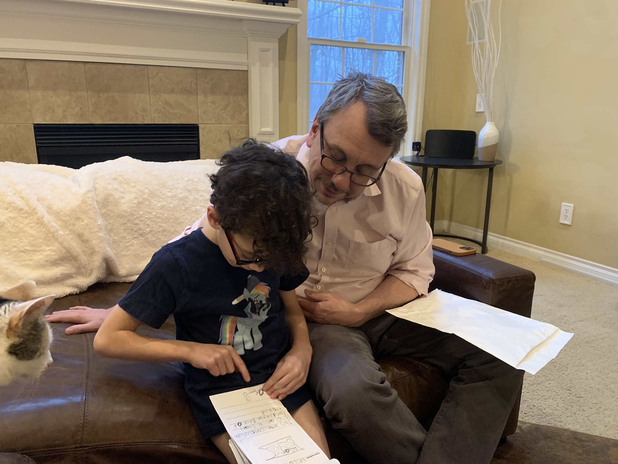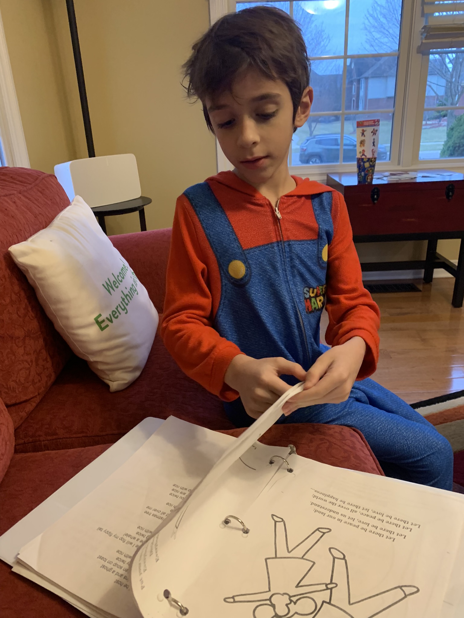 This week the kids have student-led conferences. They bring home work from school and walk us through the materials. We will get to the bulk of it this coming week during spring break but Steven and Sammy got a start playing a math game and reading some of their favorite poems.