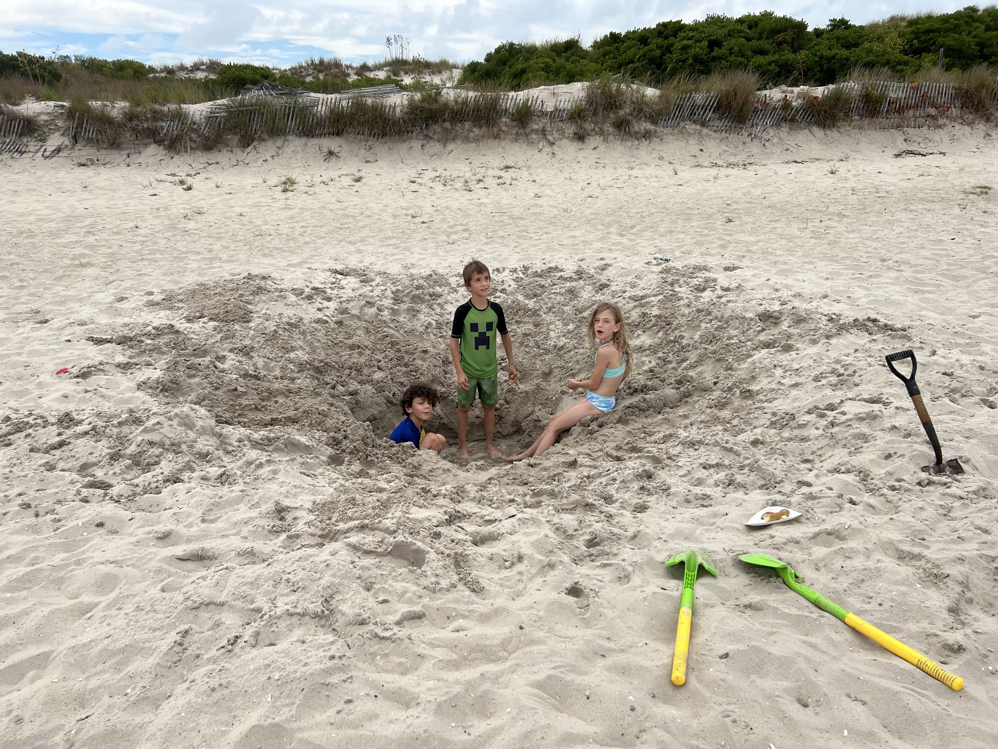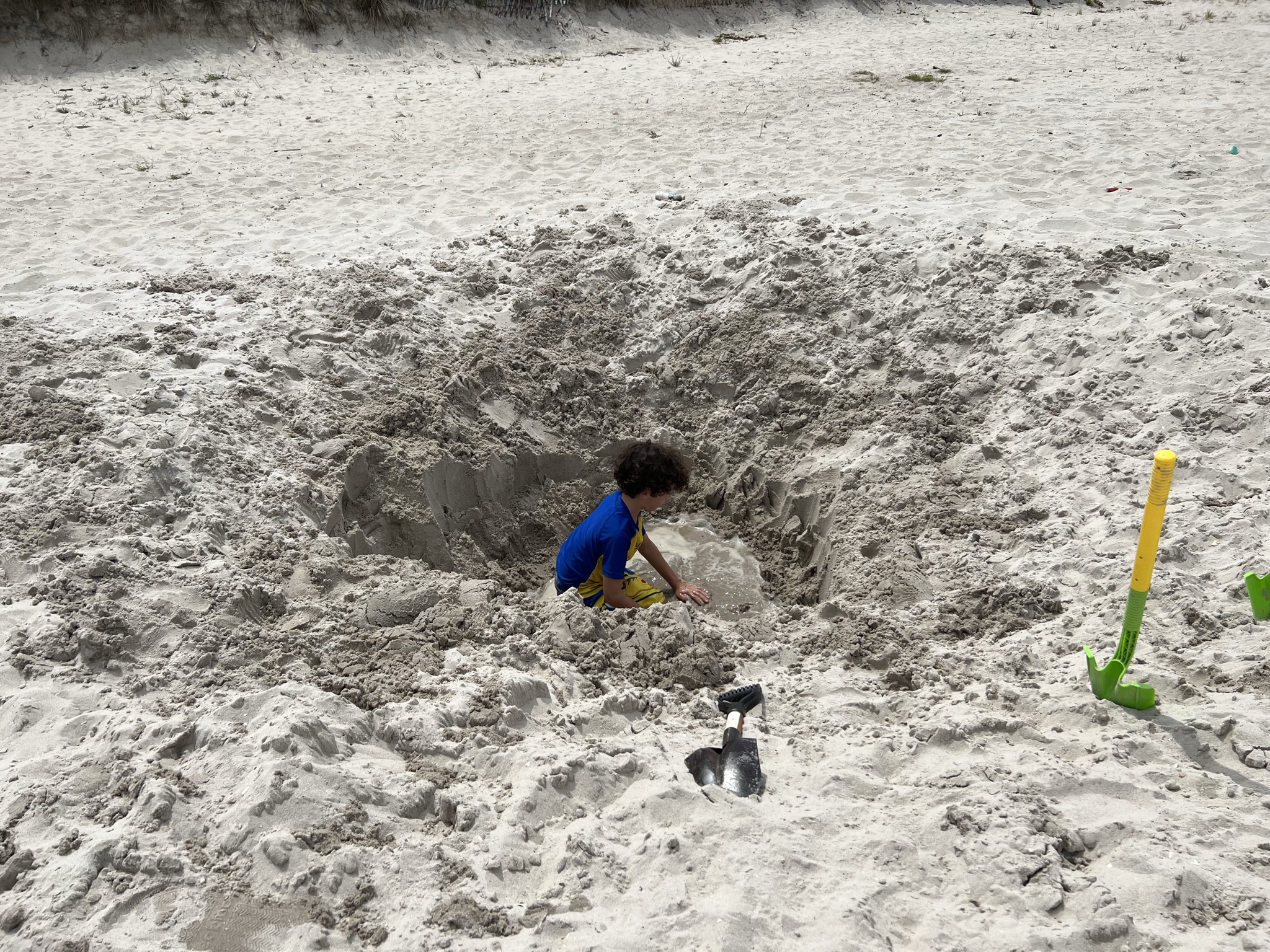 Wednesday was another perfect beach day and, this time, we headed down to the ocean. The kids hunted for shells, played in the ocean and dug holes in the sand.