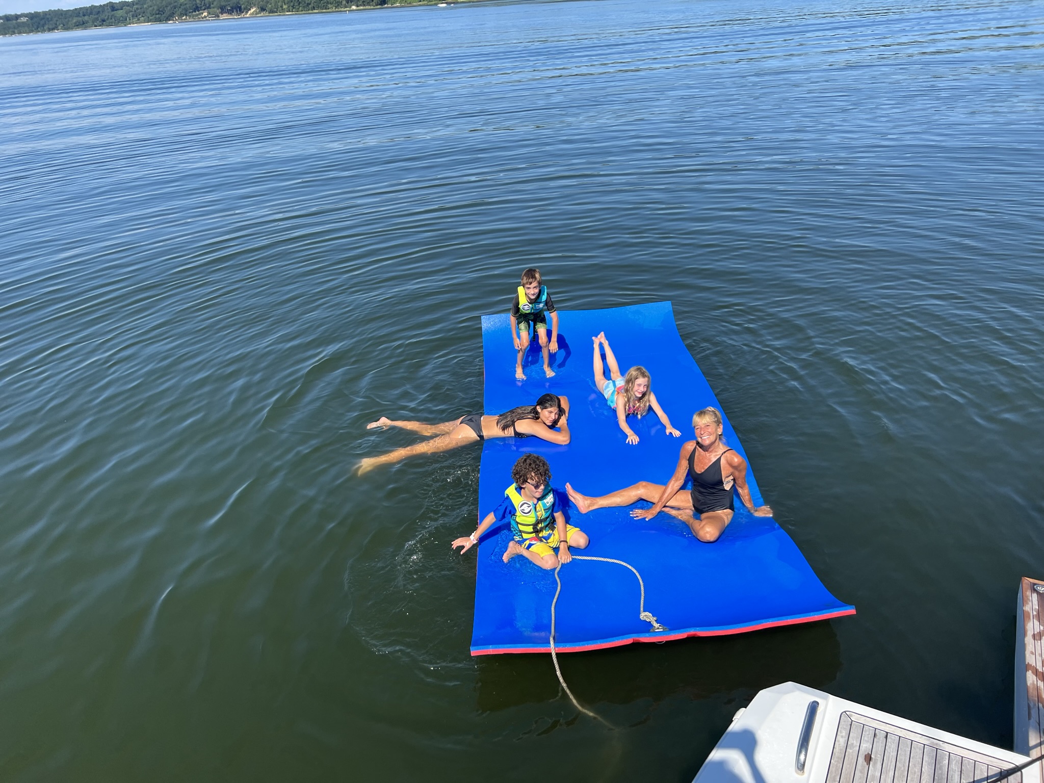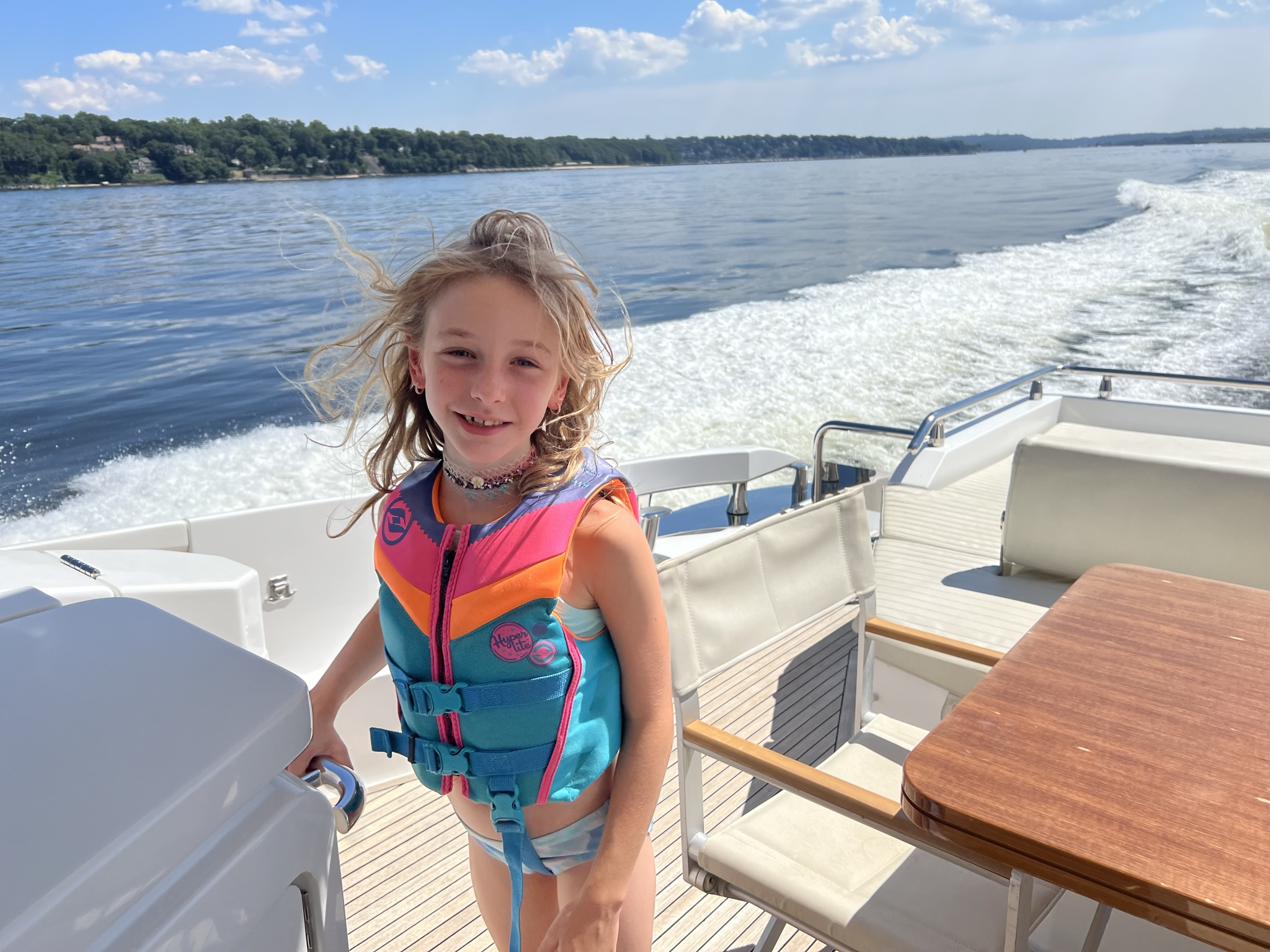 We had an incredible afternoon out on Uncle Arnie and Aunt Dale’s boat. All the Goldbergs came along with Sailor, our cousin Glori’s teenage daughter. It was a hot day which made the temp perfect when we were moving and perfect in the water.