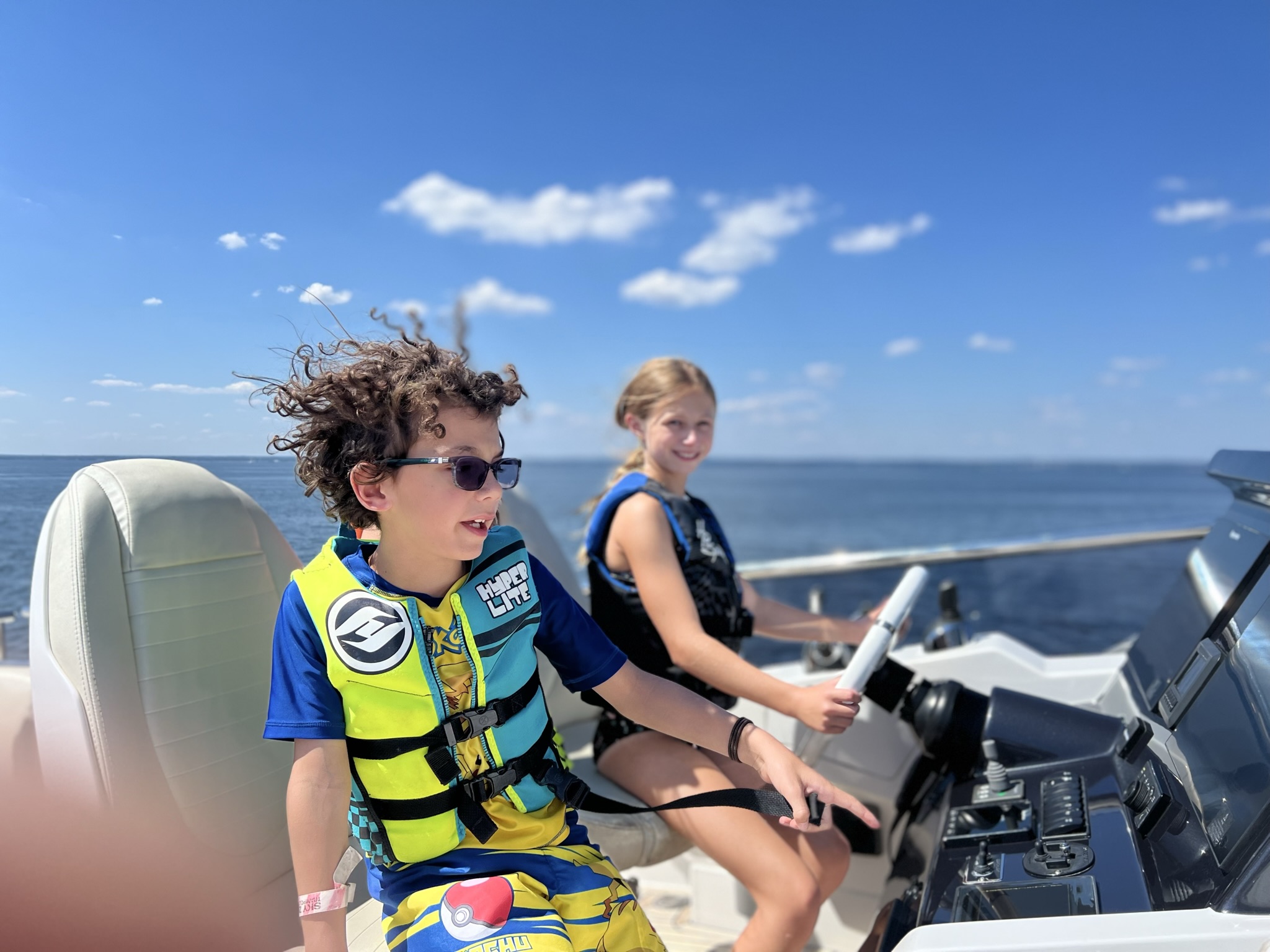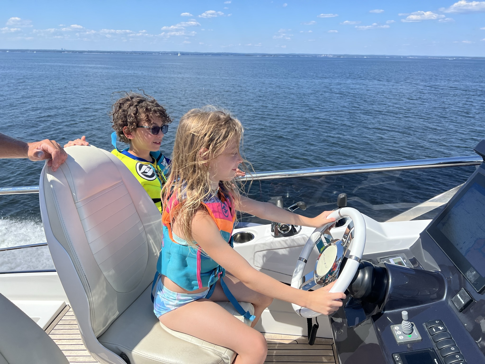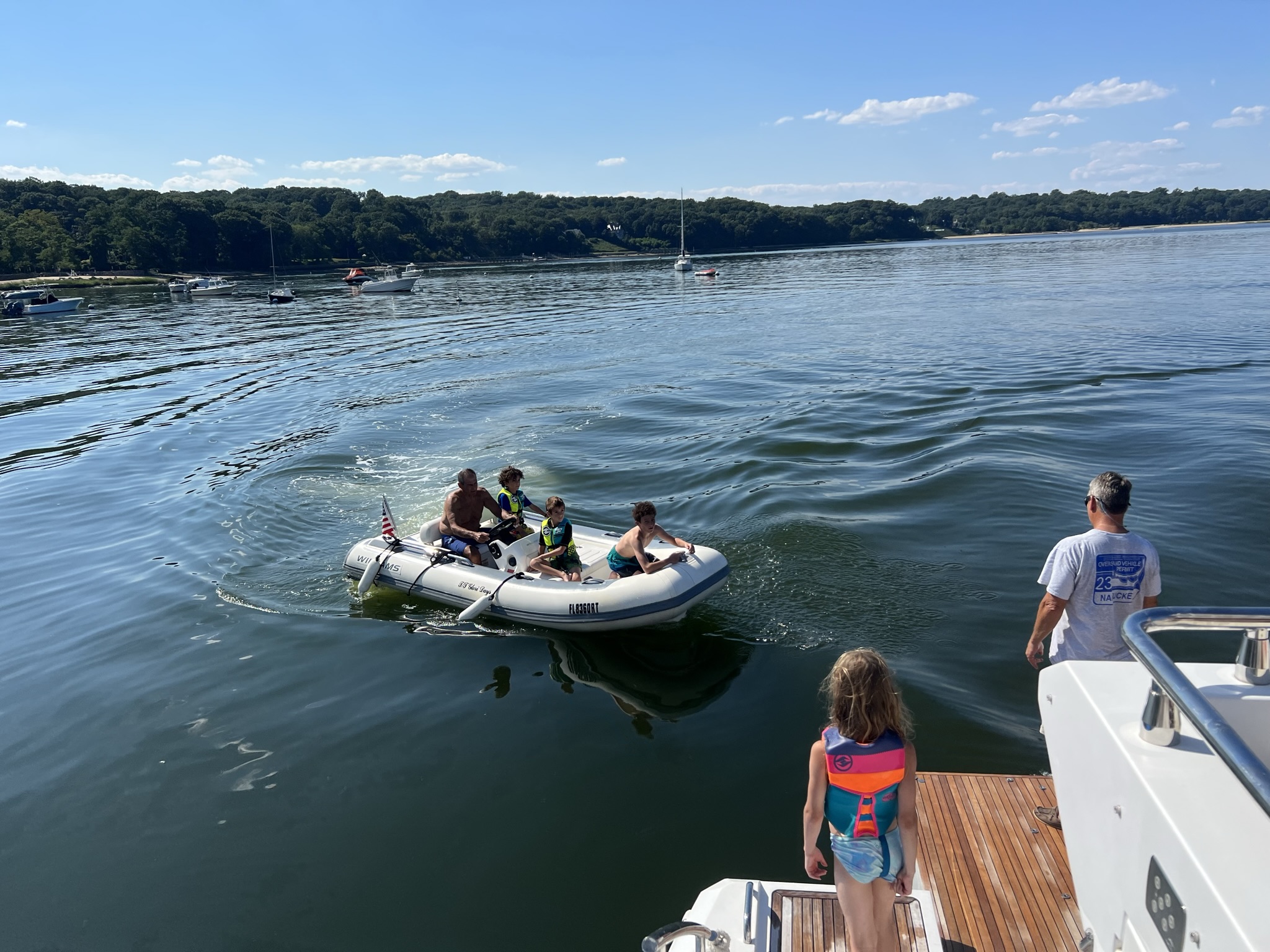 We anchored in Cold Sprint Harbor. Uncle Arnie took all the kids out on the speed boat, two rides apiece! The looooved it.