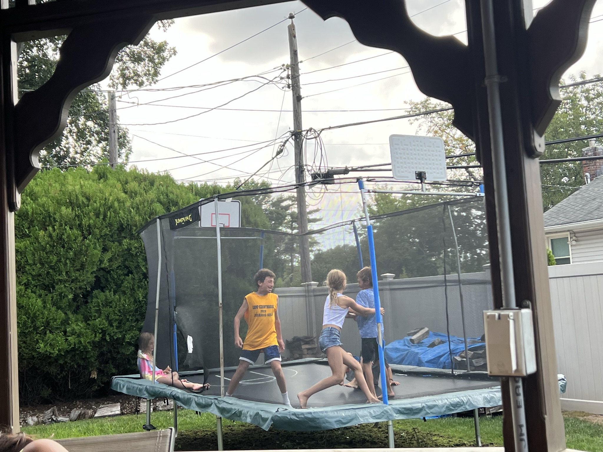 Tuesday, all five kids were back at the house while I worked. After lunch, we stopped by Allen and Syvia’s house to visit them and their dog Millie before we drove further out east to a trampoline place. I was able to work more while the kids jumped and jumped.