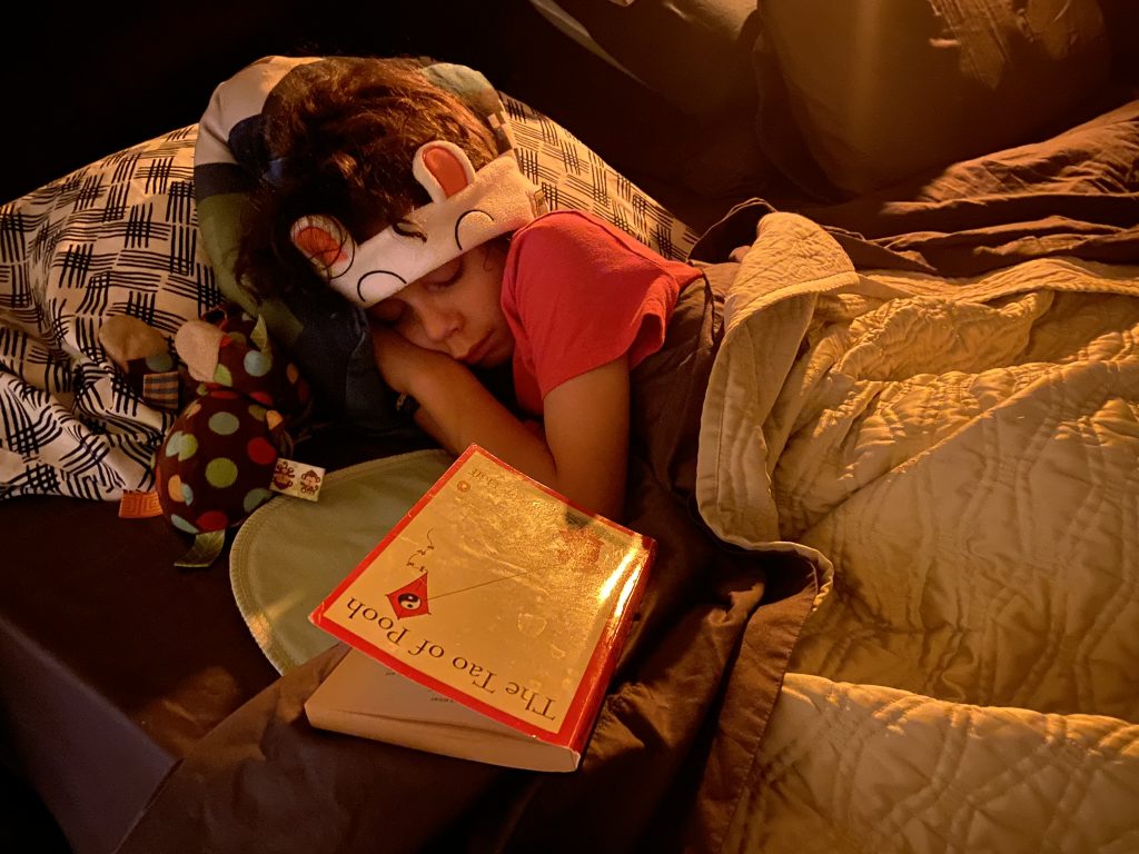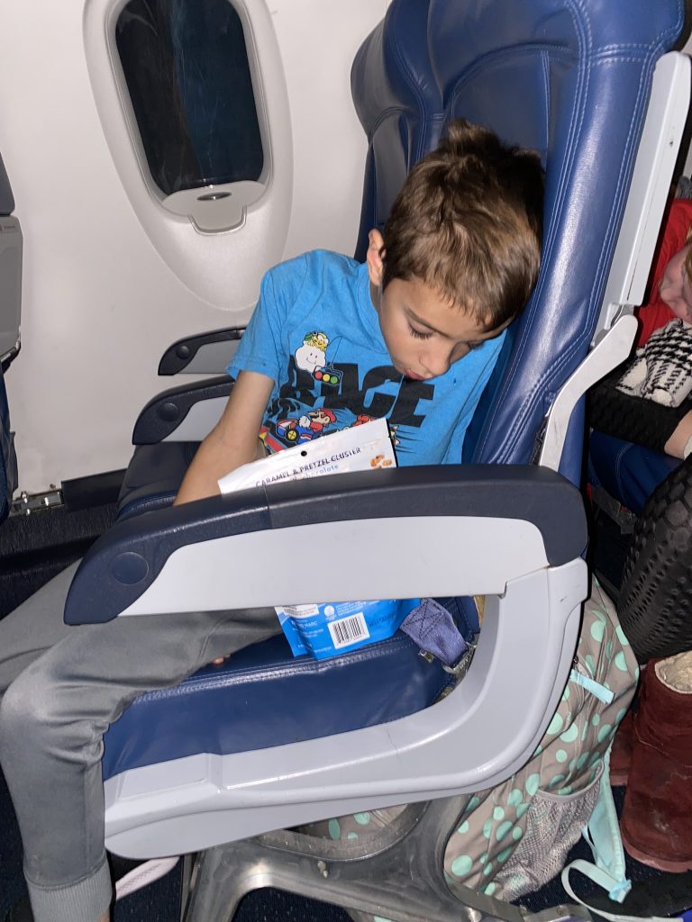 As always, descending on a night flight is an instant lullaby for Sammy.