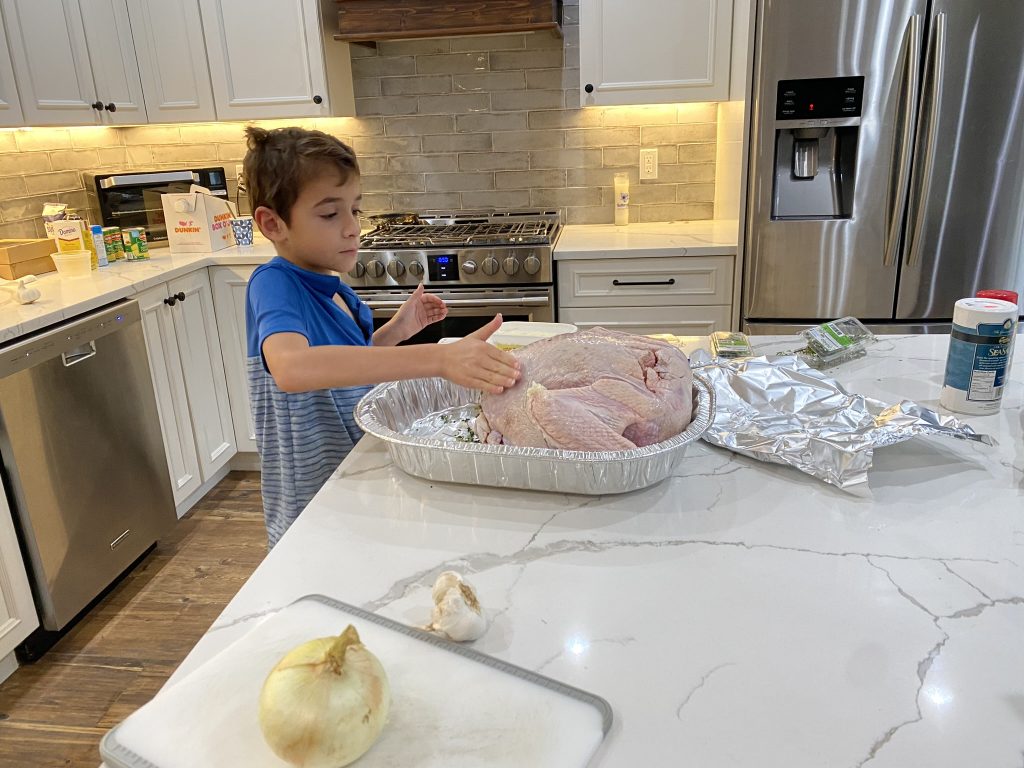 On Friday we had a bigger Thanksgiving dinner and, as always, Sammy prepped the turkey and did a super job.