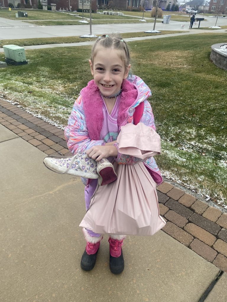 A snowstorm was expected Friday so the district made a call on a snow day by midday Friday. She and her best friend, Dylan, both cried that they wouldn’t be able to see each other on Friday. As consolation, Amaya dropped off a card for Dylan on Thursday night and Dylan came by on Saturday with a small gift for Amaya. Amaya was happy, though, about a book she got at school continuing the story of Charlie and the Chocolate Factory.