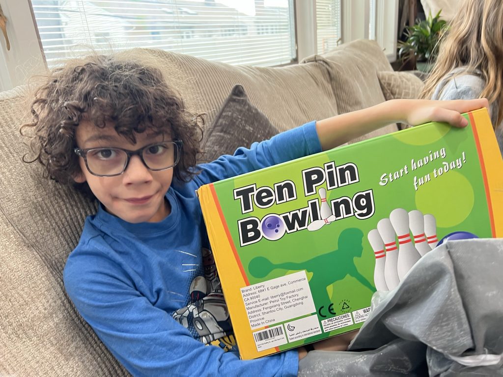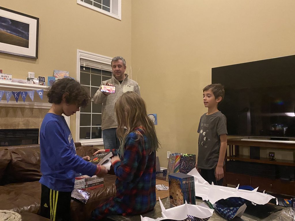 On Friday night we lit the candles on FaceTime with Grandpa Homey and Grandma Betsy and then opened the wonderful gifts they sent. (And did the same today with Aunt Ouize and Uncle Todd.)