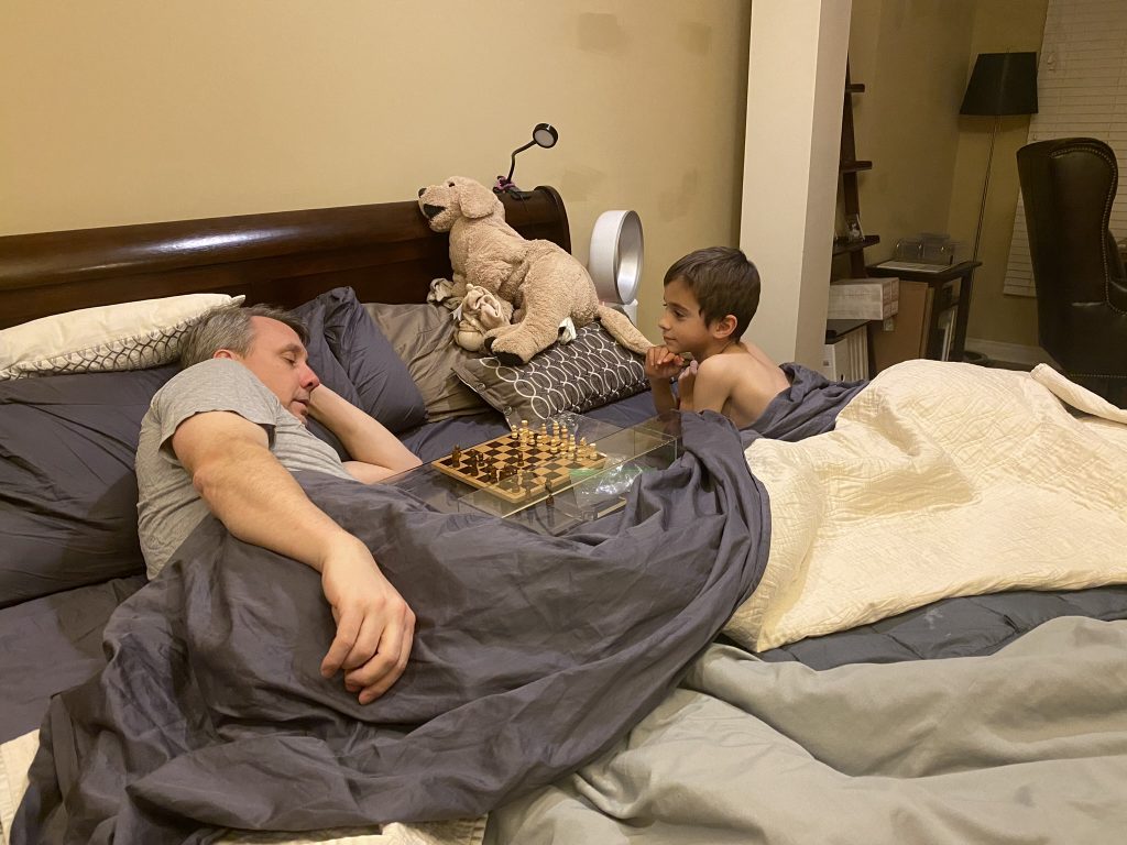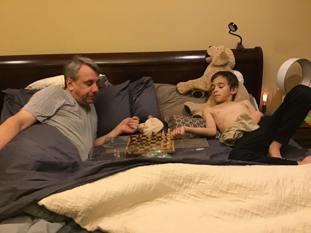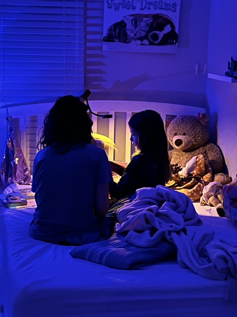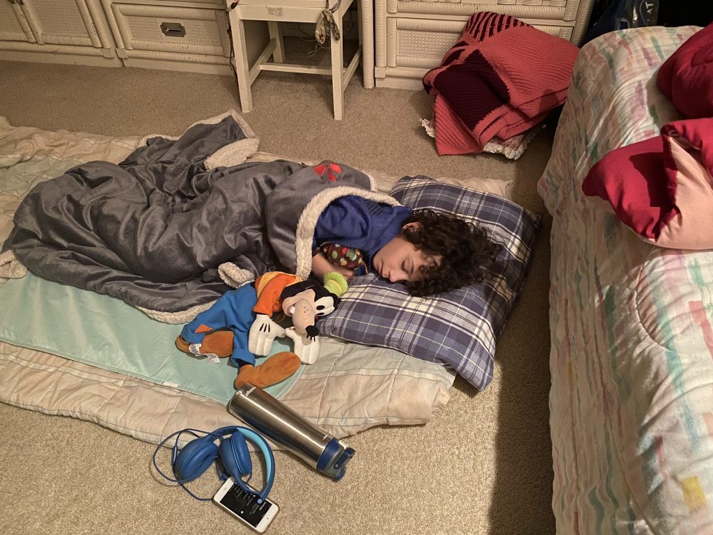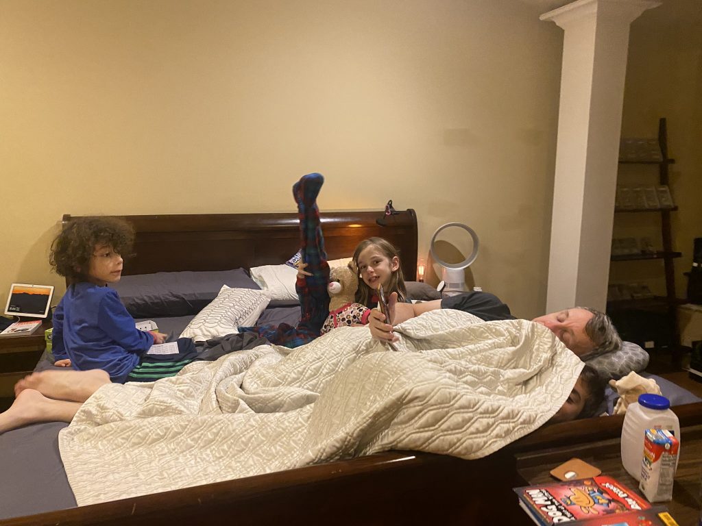 Since there was no school on Friday, the kids tried for a sleepover with daddy. Amaya made it until 9:45pm when she returned to her room.