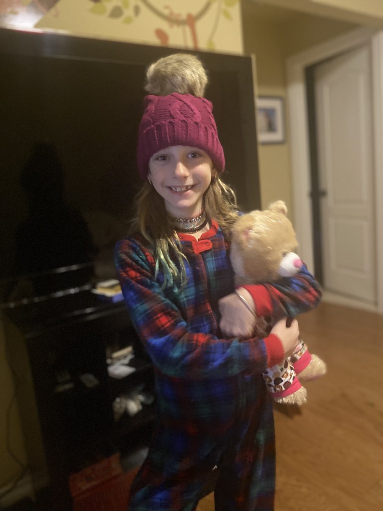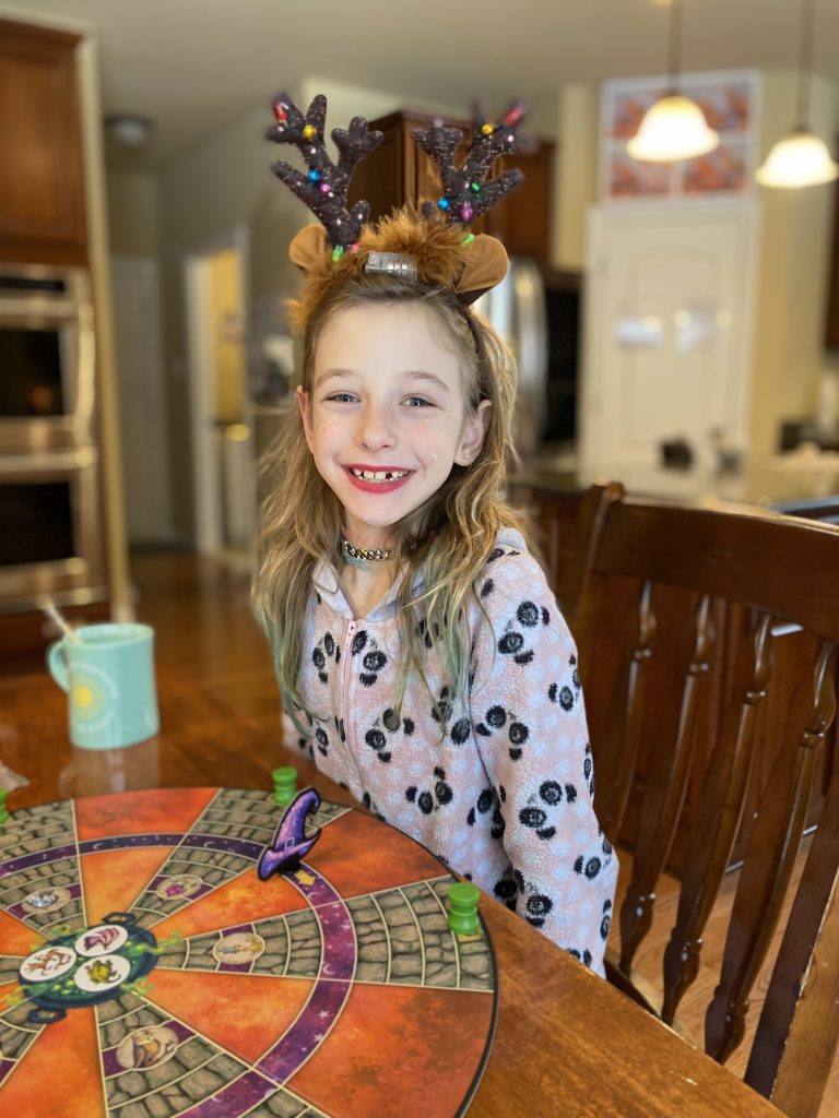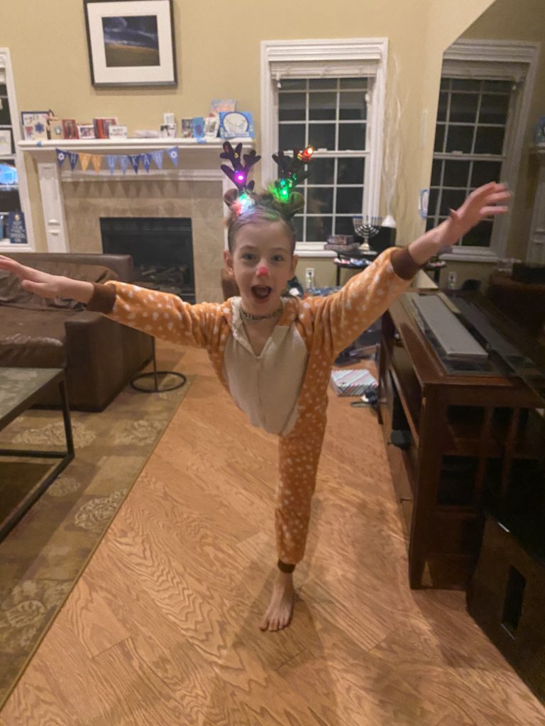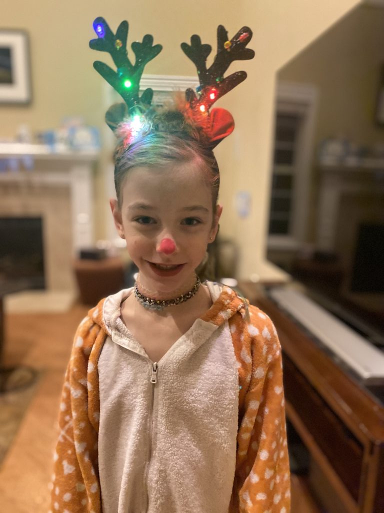 Every day at school was themed and Amaya participated in all of them which meant holiday PJs, glow lights, reindeer ears and her “reindeer” onesie.
