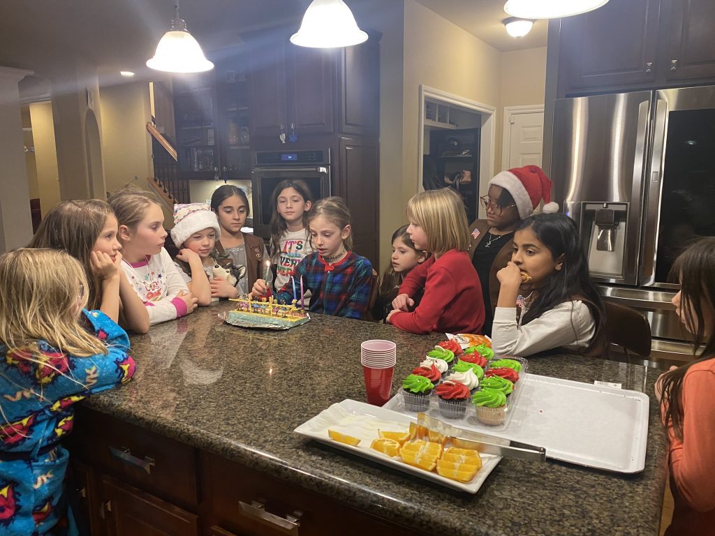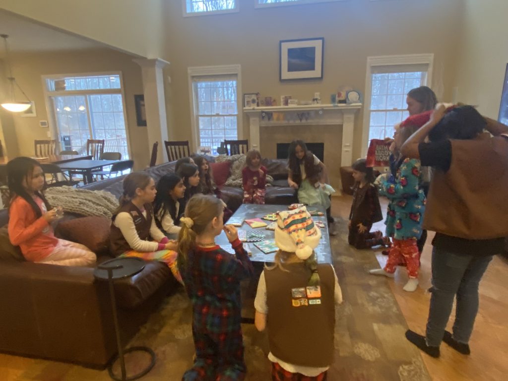 On Monday I hosted Amaya’s girl scout troop’s holiday party. It’s a relatively easy way to help out and I like seeing the girls in a casual environment. They had pizza and cupcakes, did a used book gift exchange and Amaya showed the troop how she lights the hanukkah menorah. It was a fun afternoon, and loud.