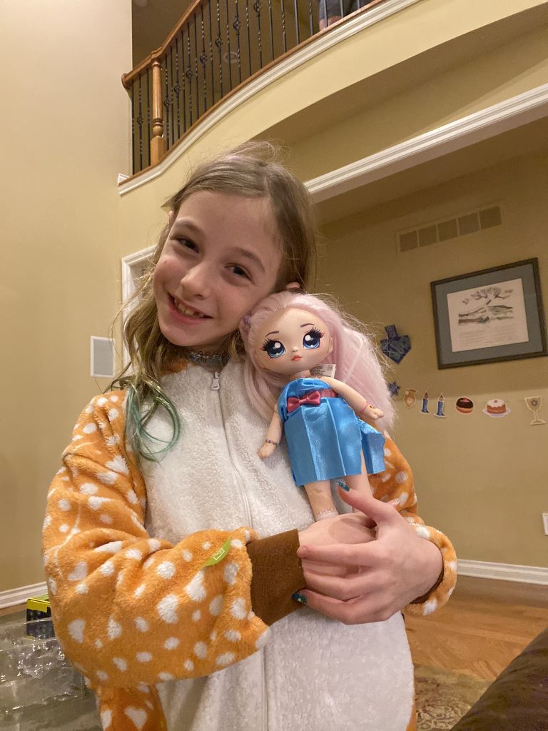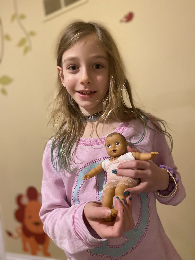 One of Amaya’s gifts was a fashion design kit and she made this dress for her baby Olivia.