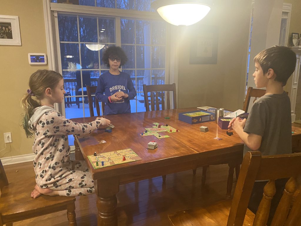 Carcassone with the kids, using an expansion pack I was gifted for Hanukkah.