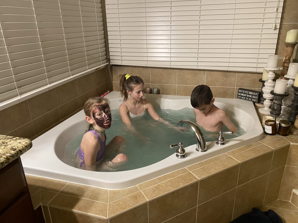 The kids had a very busy weekend, especially Amaya. Amaya had a playdate at her friend Dylan’s house from 9am- 12pm on Saturday. The boys had a birthday party from 2- 4:30 that Amaya was invited to at the last minute. And then we had two friends sleep over (Clarie and Elly).
