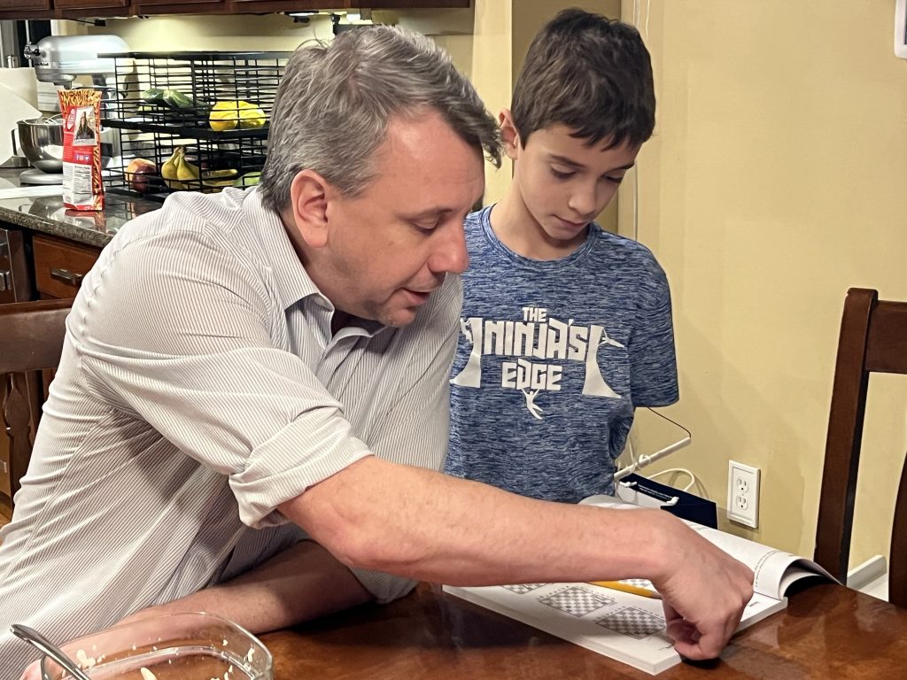 The boys started after school chess on Mondays. (Amaya has girl scouts.) I heard there are 20 kids in the program! They came home with chess workbooks and have weekly homework. Any shot I had of beating the boys is in the rearview mirror.