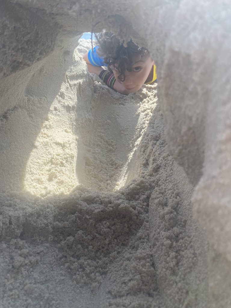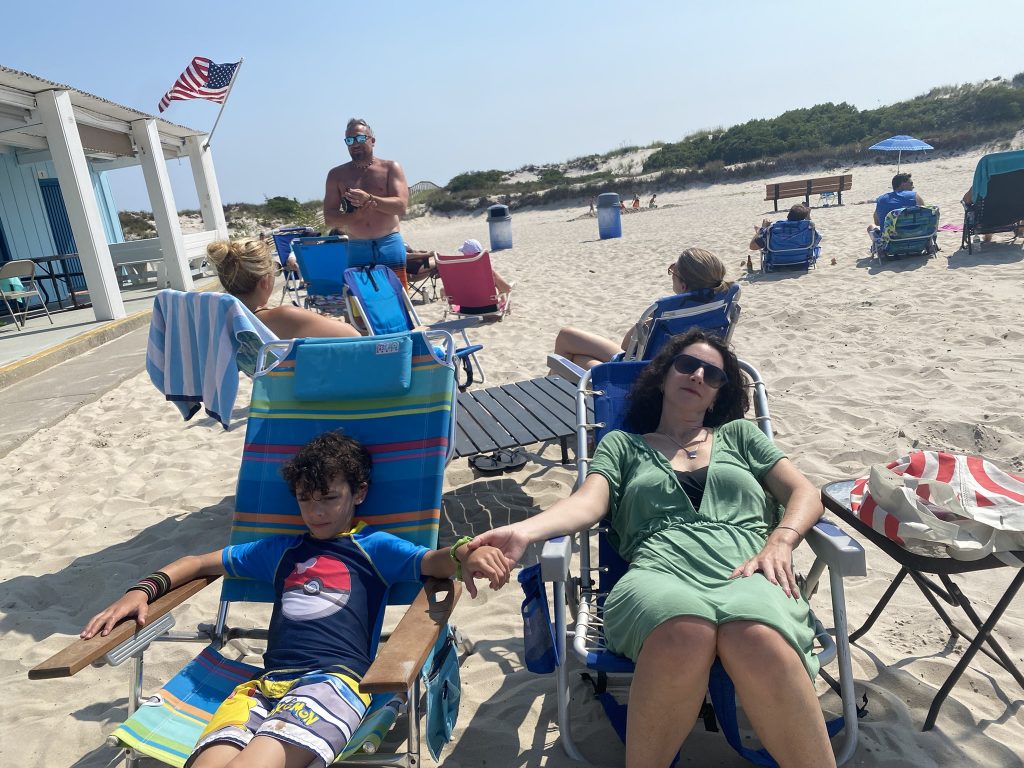 Back to the beach on Wednesday! Savta even made it down to the ocean… all that way. To help, she borrowed a sand wheelchair from the first aid cabana and had support from Auntie and Amaya on the way down, and Steven and Auntie on the way back.